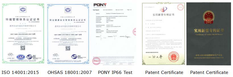 YHT has more than 24 products that got the patent for utility models and 3 software copyright. It pass certificates ISO 9001:2015, ISO 14001:2015, OHSAS 18001:2007, RoHS, GB/T 29490-2013, TLC, PONY, etc.