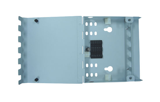 OTB-I06 is a metal fiber optic terminal box with 6 SC simplex adapter ports for fiber connection and distribution. It is indoor wall mounted box in FTTx project.
