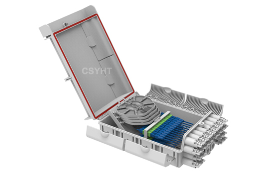Fiber optic terminal box is available for the distribution and terminal connection of various kinds of optical fiber system, especially suitable for mini-network terminal distribution, in which the optical cables, patch cords or pigtails are connected.