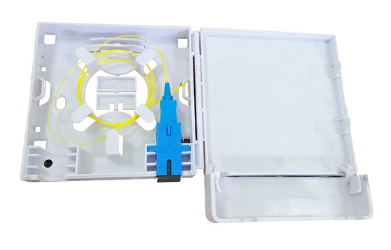 Fiber optic wall plate FP-015 is indoor wall mounted fiber optic box that for end user, capable to handle fiber fusion, fiber cables and pigtails. It is used in FTTH project.