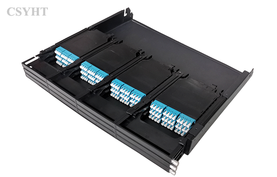 With 3pcs sliding trays, load 12pcs MPO cassettes HD-08