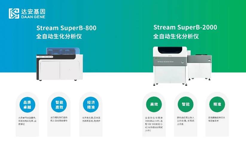 截至目前,達(dá)安基因已上市的生化產(chǎn)品主要包括兩款全自動(dòng)生化分析儀(Stream SuperB-800、Stream SuperB-2000)以及112種檢測(cè)項(xiàng)目,能夠全面地滿足臨床需求。