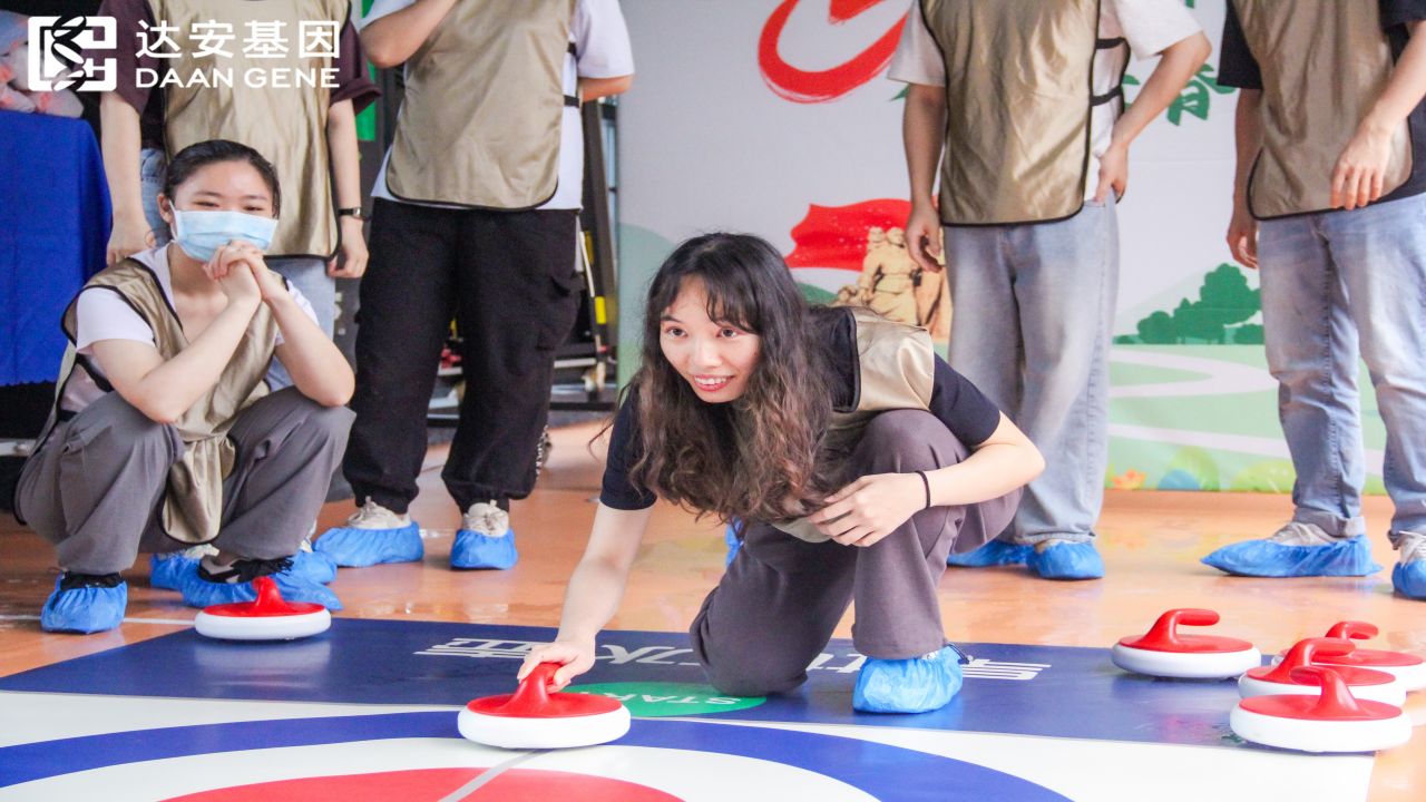 緊接著進行了“旱地冰壺”游戲的組隊競技。冰壺又被譽為“冰上的象棋”,它比拼的不僅是力量、技巧,也需要智慧和謀略。比賽中,各隊隊長冷靜布局指揮,隊員們全神貫注,現場精彩對決不斷,大家充分享受游戲帶來的激情與歡樂,在對抗中同心協力,培養了團隊精神。