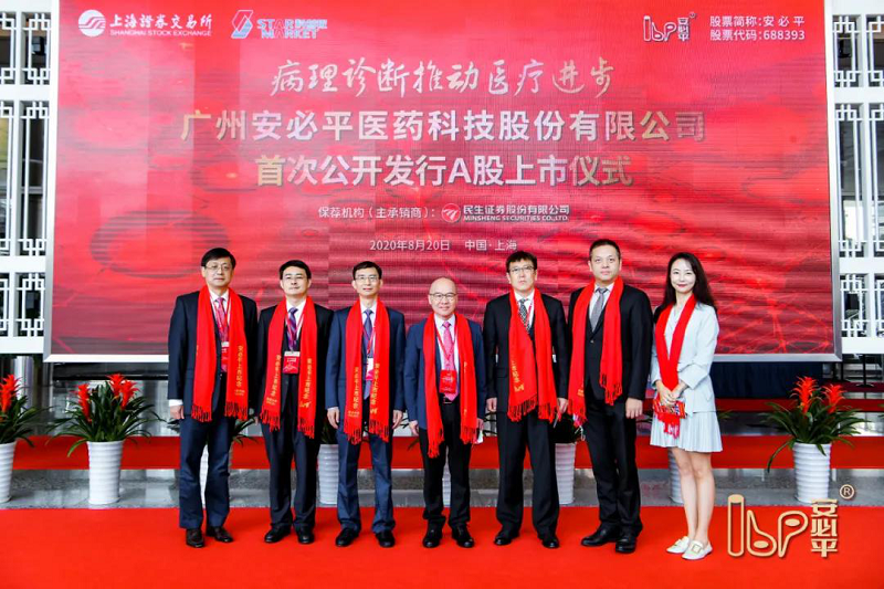 今天,廣州安必平醫藥科技股份有限公司(證券簡稱:安必平,證券代碼:688393)科創板上市儀式在上海證券交易所及上海證券交易所南方中心(廣州)同步舉行,這是國內病理診斷領域第一股,也是安必平歷史的重要一刻。安必平董事長、總經理蔡向挺先生、廣州開發區管委會副主任張暉先生、廣州開發區金融工作局副局長湯克明先生、民生證券股份有限公司執行副總裁、投資銀行事業部總裁楊衛東先生、安必平董事、董事會秘書、副總經理汪友明先生、安必平董事陳吾科先生、股東代表深圳高特佳弘瑞投資董事長黃青女士、中山大學達安基因股份有限公司董事、總經理周新宇先生等股東及中介團隊代表、安必平高管團隊等出席了本次在上海證券交易所舉行的安必平科創板上市儀式,共同見證這一具有里程碑意義的時刻。