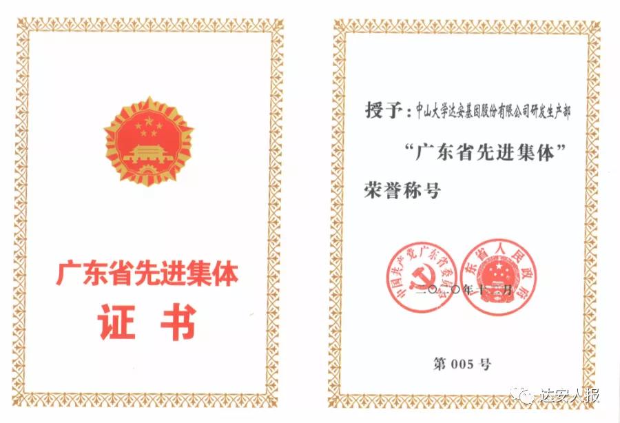 達(dá)安人報 2020-12-032020年12月2日,2020年廣東省勞動模范先進(jìn)工作者和先進(jìn)集體表彰大會在廣州舉行,會議對399名省勞動模范、先進(jìn)工作者和100個先進(jìn)集體進(jìn)行表彰。受表彰的省勞模中,87人參與抗疫;受表彰的省先進(jìn)集體中,25個參與抗疫。中山大學(xué)達(dá)安基因股份有限公司研發(fā)生產(chǎn)部被授予“廣東省先進(jìn)集體”榮譽(yù)稱號。這體現(xiàn)了廣東省委、省政府對達(dá)安基因在此次“戰(zhàn)疫”過程中所作貢獻(xiàn)的充分肯定。