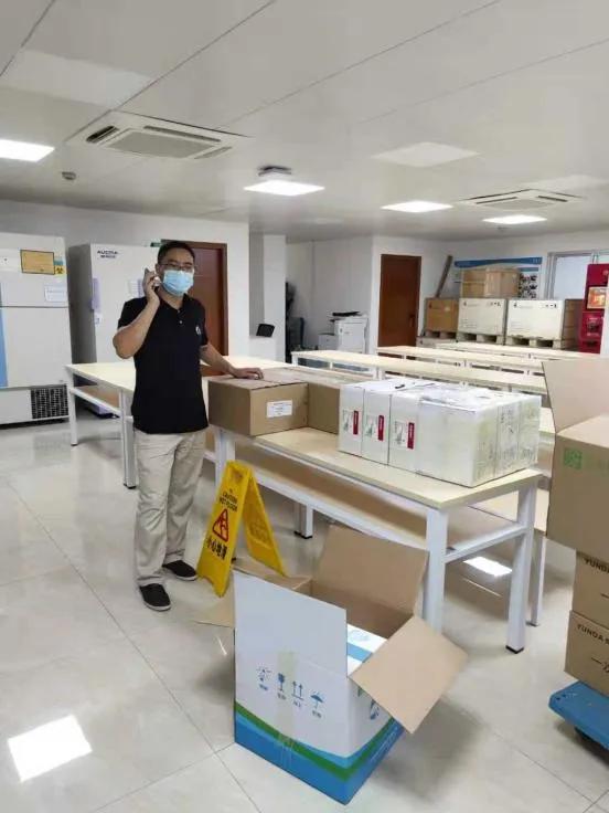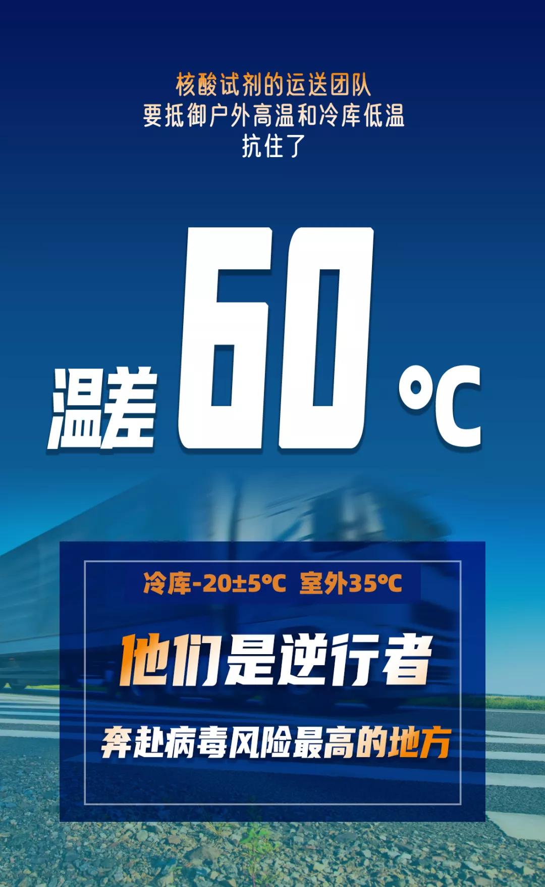 出來后,從-25℃,又回到30℃的高溫中,爭分奪秒,通過保溫箱和冷藏車,將試劑配送到檢測(cè)點(diǎn)。每一天,在近60℃的溫差之間,如此反復(fù)。