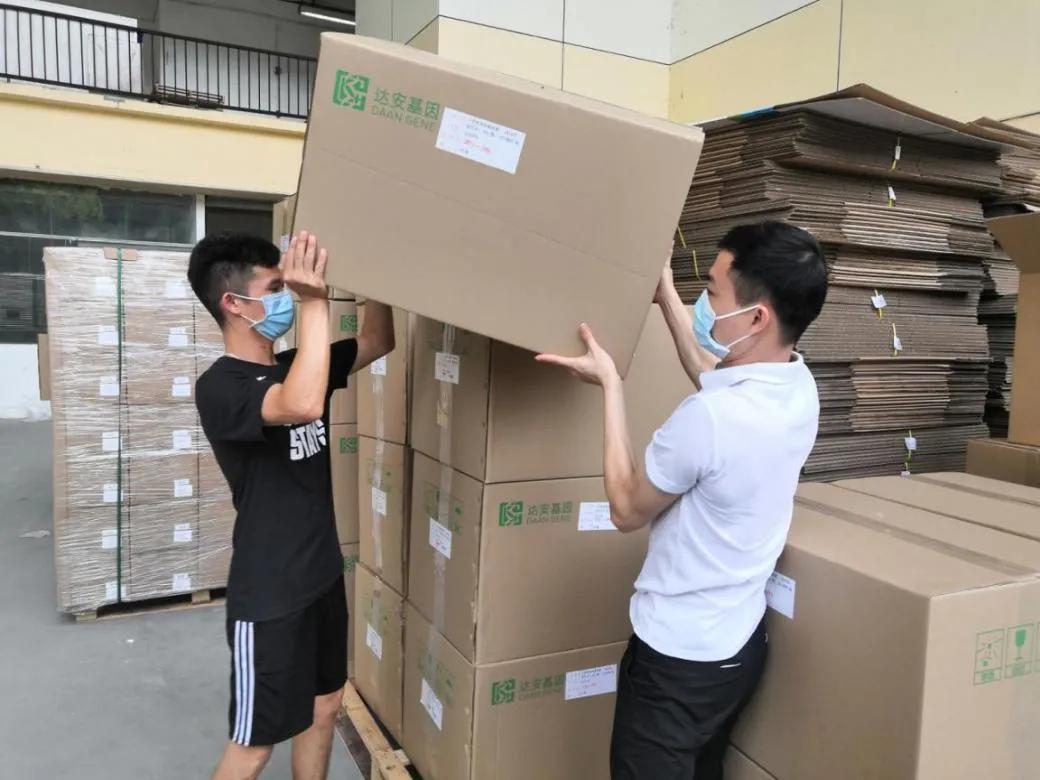 核酸檢測(cè)試劑的供應(yīng)、樣品的運(yùn)輸,是這次戰(zhàn)役的重中之重。達(dá)安基因負(fù)責(zé)物流配送的工作人員,負(fù)責(zé)將核酸檢測(cè)試劑,送到相應(yīng)的檢測(cè)點(diǎn),再把已經(jīng)采集好的樣品試管,送回實(shí)驗(yàn)室。他們是這場(chǎng)戰(zhàn)役中的逆行者,折返于病毒風(fēng)險(xiǎn)最高的地方。6月2日起,廣州市荔灣區(qū)白鶴洞街、中南街由中風(fēng)險(xiǎn)地區(qū),調(diào)整為高風(fēng)險(xiǎn)地區(qū)。荔灣區(qū)沖口街、東漖街等列為中風(fēng)險(xiǎn)地區(qū)。這意味著,全市接近有4.6萬人居家隔離,每天都要進(jìn)行核酸檢測(cè)。然而,這些地區(qū),不僅人員、車輛進(jìn)出實(shí)行嚴(yán)格管控,連快遞、物流等也處于封閉狀態(tài)。核酸檢測(cè)試劑就是“彈藥”,運(yùn)不進(jìn)去,篩查無以為繼;樣品送不出來,篩查更是可能一場(chǎng)空。達(dá)安基因的物流配送團(tuán)隊(duì),硬是開辟了一條特殊“生命通道”:安排專人專車,直接把防疫物資,快速送到疫情片區(qū)的各個(gè)醫(yī)療單位手中。