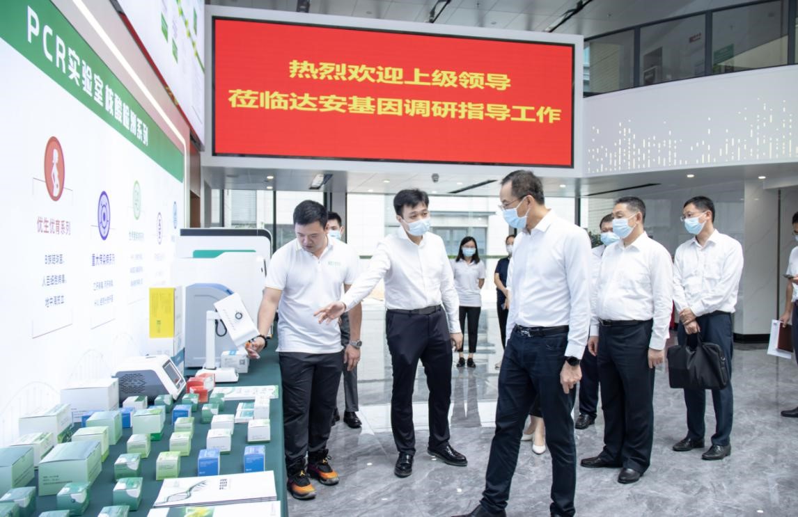 8月3日上午,廣州市政協副主席、廣州市財政局局長陳雄橋赴廣州金控集團下屬達安基因進行實地調研,期間參觀了達安基因耗材廠和儀器制造廠,聽取了達安基因重點工作情況。市財政局金融處有關同志,廣州金控集團黨委書記、董事長聶林坤,黨委副書記馬智彬,監事會主席張鐵強、總經理助理王達以及集團本部有關部門負責同志、達安基因領導班子參加調研。