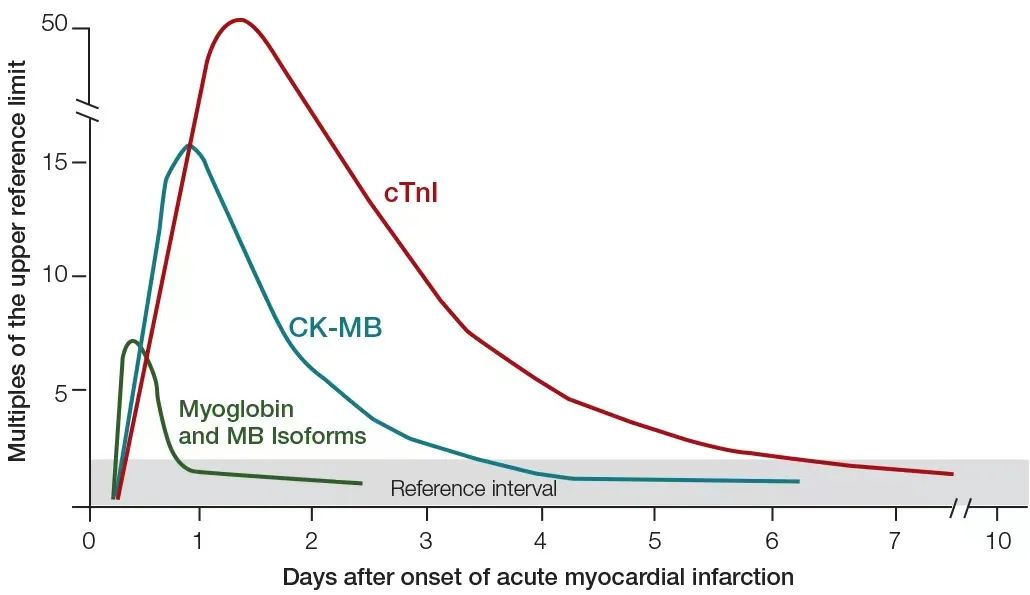 肌鈣蛋白(cTnI)是心肌肌肉收縮的調(diào)節(jié)蛋白。肌紅蛋白(Myo)是一種主要存在于橫紋肌中含亞鐵血紅素的小分子蛋白質(zhì),負責心肌細胞的氧氣貯存與分配。肌酸激酶同工酶(CK-MB)別名為血清肌酸激酶同工酶是一種酶類成分。這些心臟標志物檢測已經(jīng)成為臨床醫(yī)生常用的診斷心肌梗死的依據(jù)。