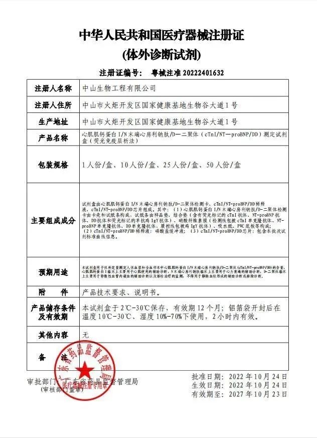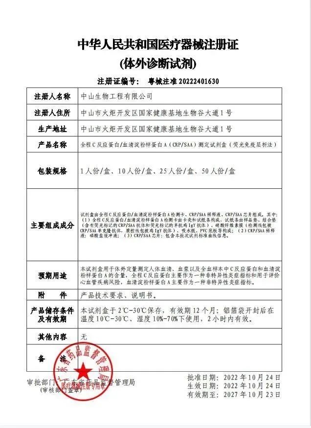 近日,達安基因下屬全資子公司中山生物工程有限公司有3項新產品再獲廣東省藥品監督管理局頒發的《醫療器械注冊證》。中山生物POCT系列產品已累計37項獲注冊證書。