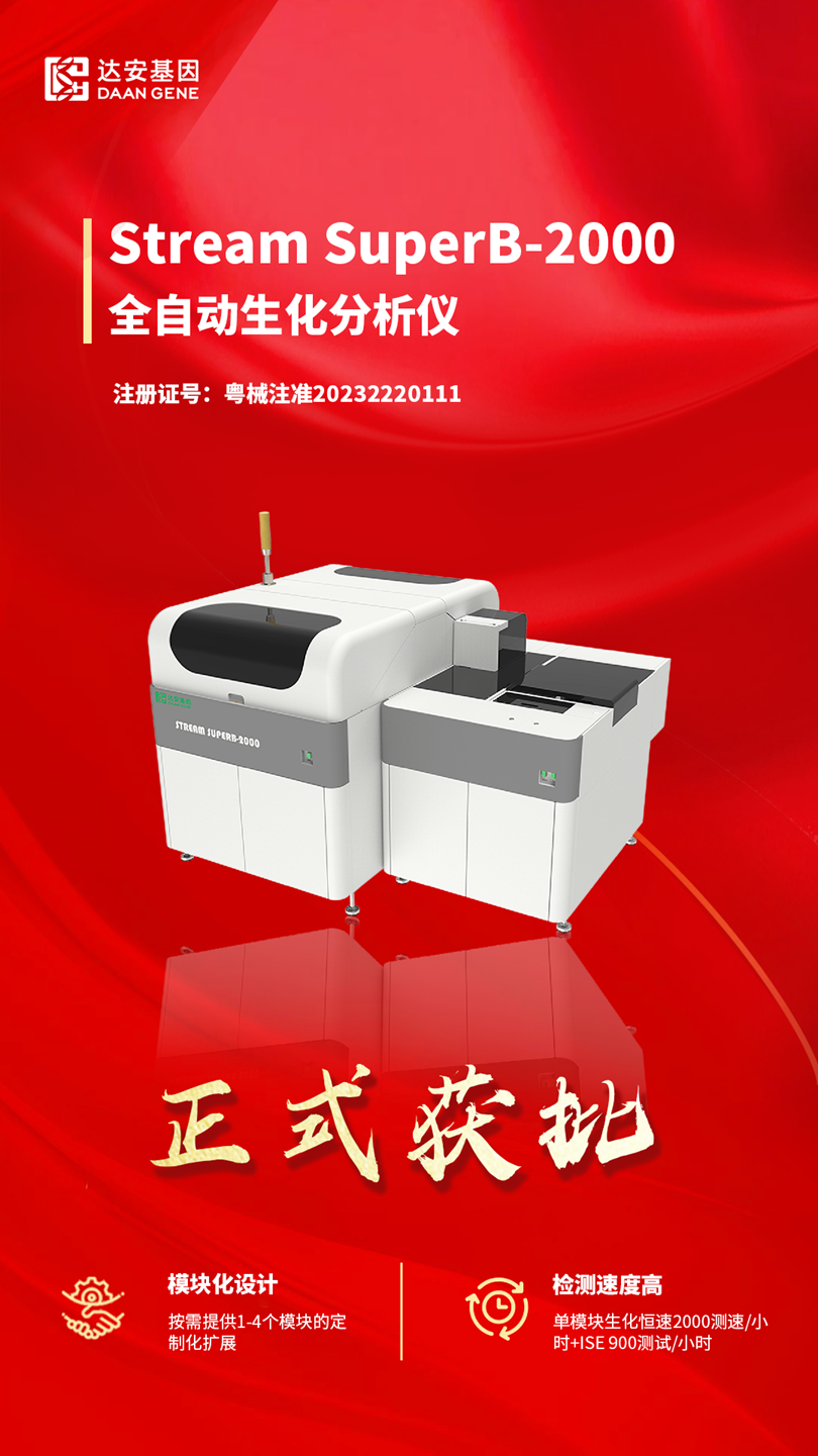 ?2023年1月18日,達安基因全自動生化分析儀Stream SuperB-2000獲得醫療器械注冊證,注冊證編號:粵械注準20232220111。