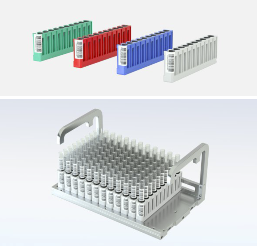可隨時放置樣本架,支持2種規格(5架/10架)的樣本提籃,每個樣本架10個標本,最多可放置60個樣本架,最高單次可放置樣本數達600個。