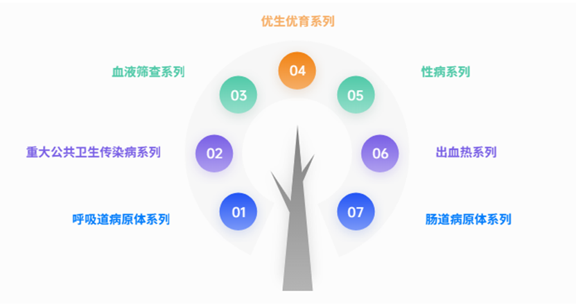 達安基因從事熒光定量PCR試劑盒研究已達34年之久,依托全國領先、全球一流的熒光定量PCR技術和產業化能力,研發生產熒光定量PCR試劑盒80多種,覆蓋呼吸道病原體系列、血液篩查系列等7大領域。