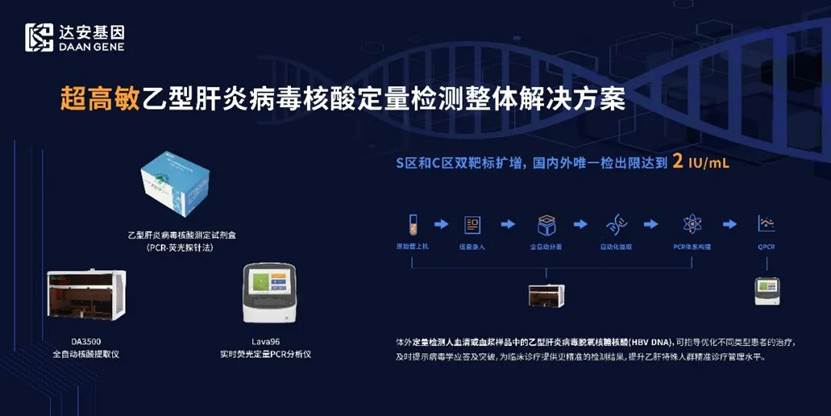 本次展會,達安基因也首次展出超高敏乙型肝炎病毒核酸定量檢測整體解決方案,國內外唯一檢出限達2 IU/mL,能讓乙肝診療變得如此精確!